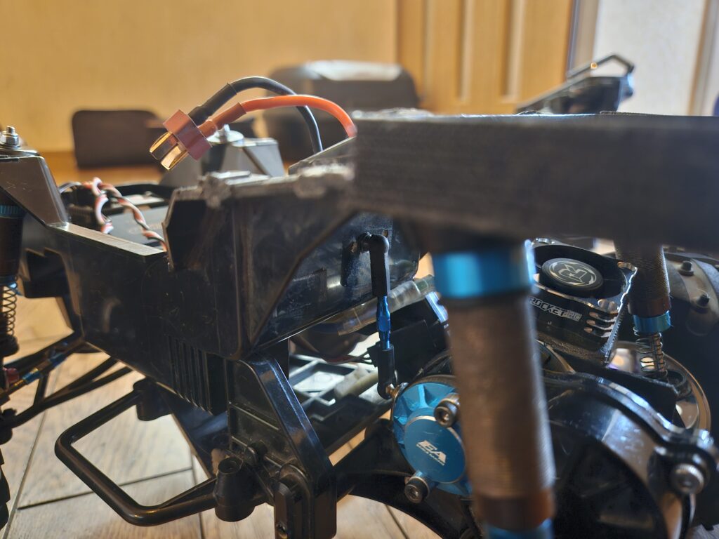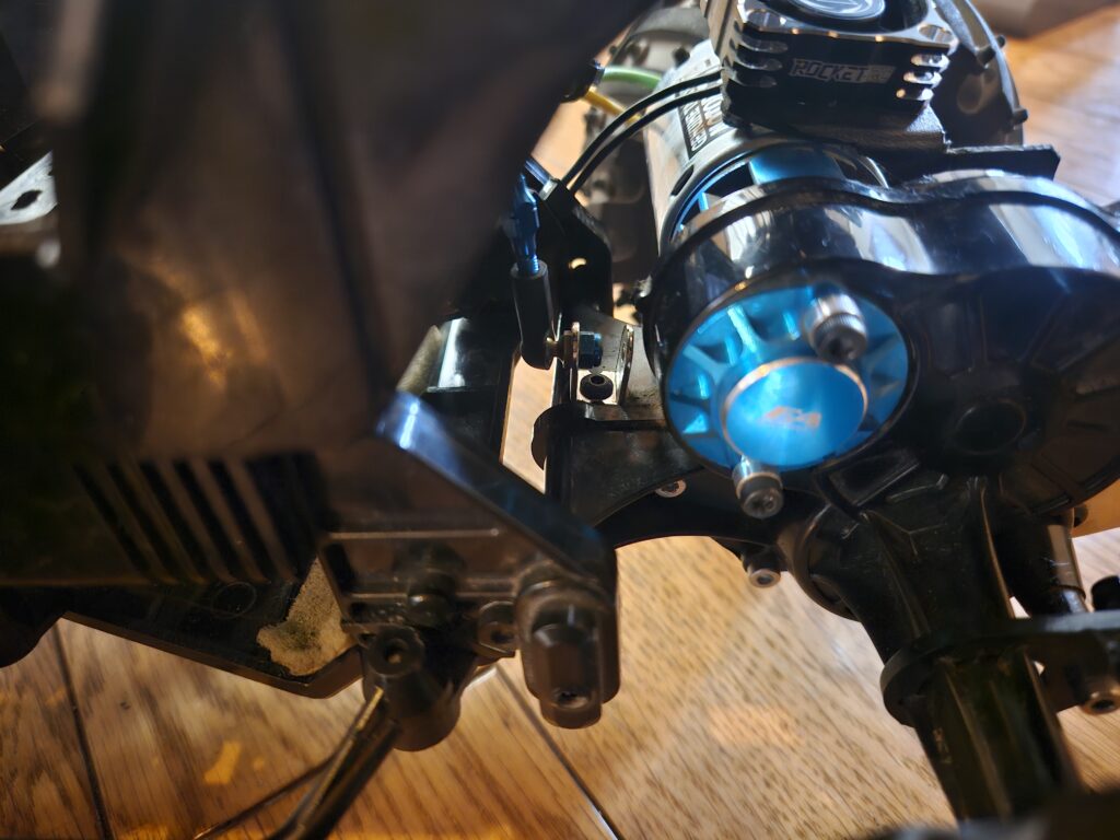 下部はダンパー用のパーツをギアボックスに穴を空けてネジ止め。
