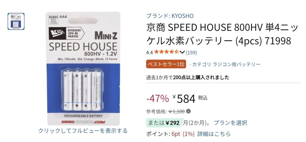 ミニッツシリーズを動かすのに必要な「単四型電池」。