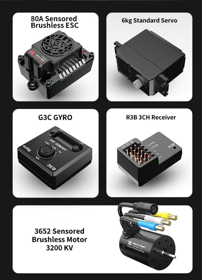 サーボ・ジャイロ・送受信機はさほど変わりなさそうですがモーターとESCが「センサー付き」になってます!
