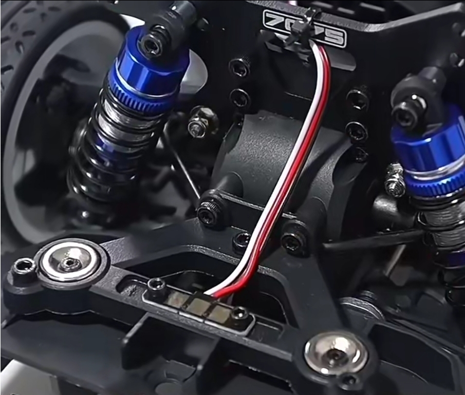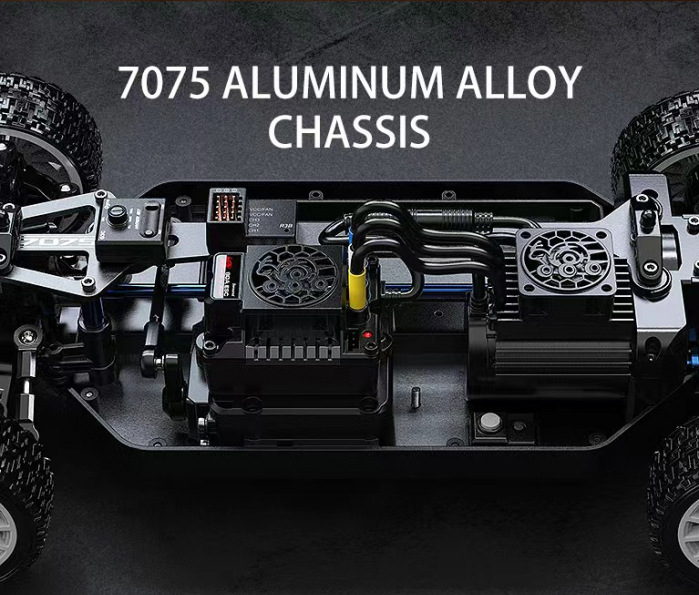 センサー付きブラシレスモーターや金属パーツを多用したシャーシ。