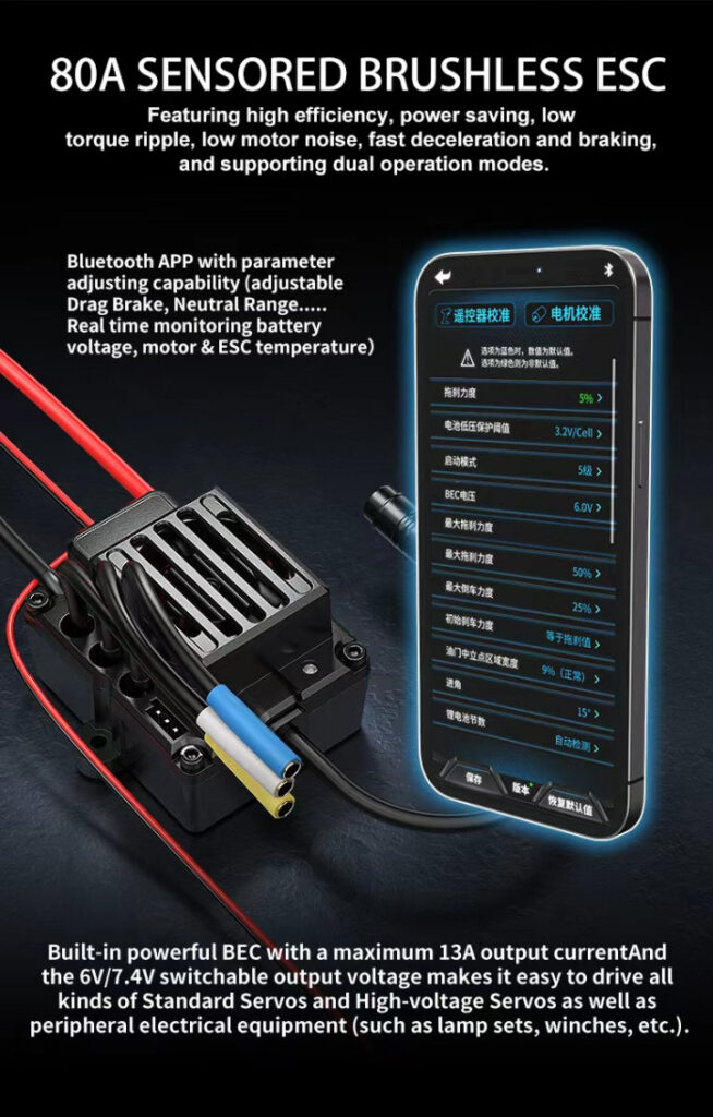 またBECボルテージが6Vと7.4Vと対応とあり、サーボをHV対応にグレードアップしてもしっかり性能を引き出せますね。